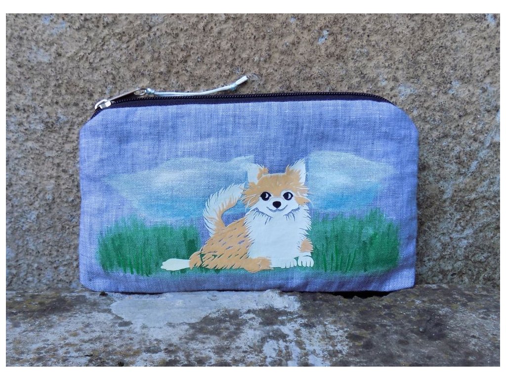 Lněný penál zdobený originální nažehlovanou grafikou a malbou na textil. Uzavírá se na zip.