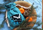 Lněná kapsička zdobená originální nažehlovanou grafikou a malbou Uzavírá se na zip.